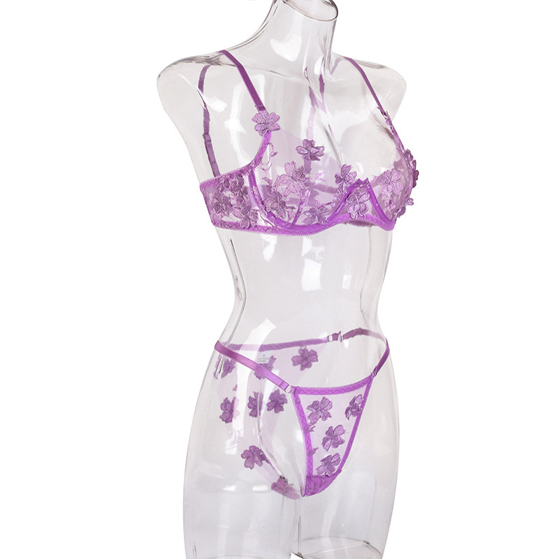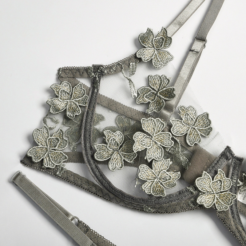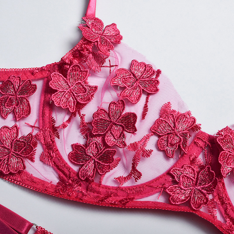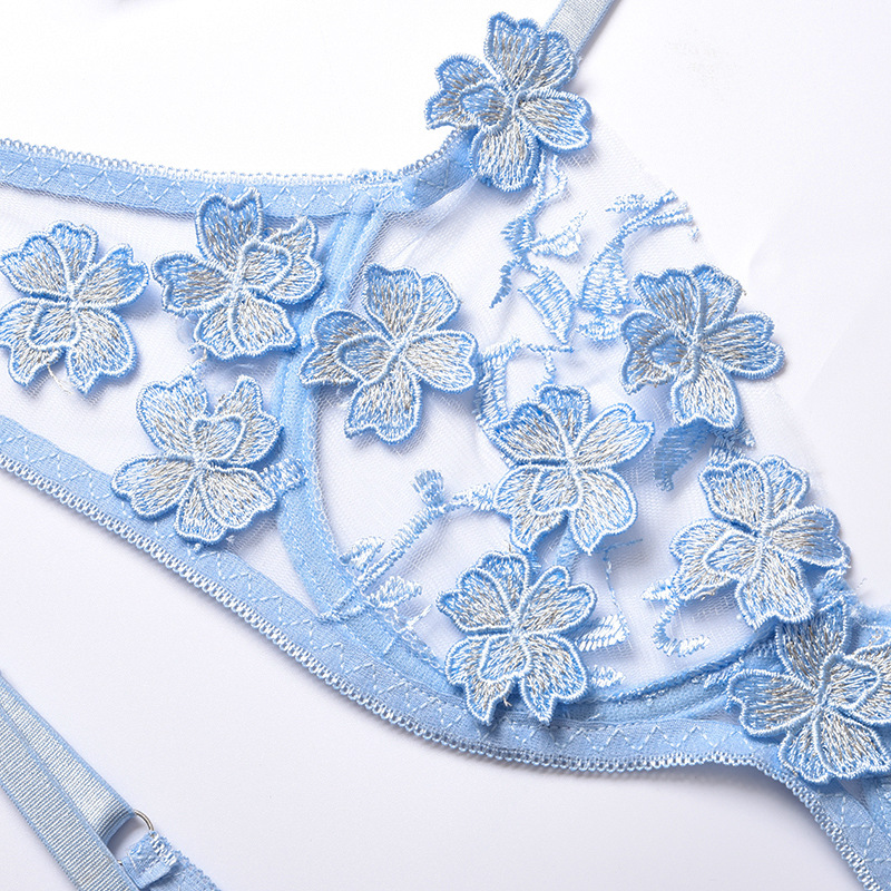 Sexy Romantic Floral Embroidery See-through Sexy Suit Women Spot