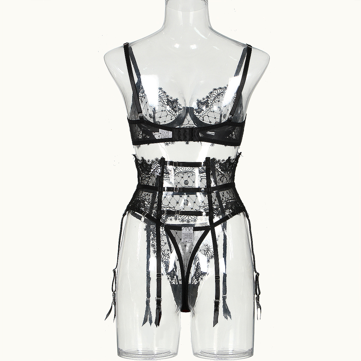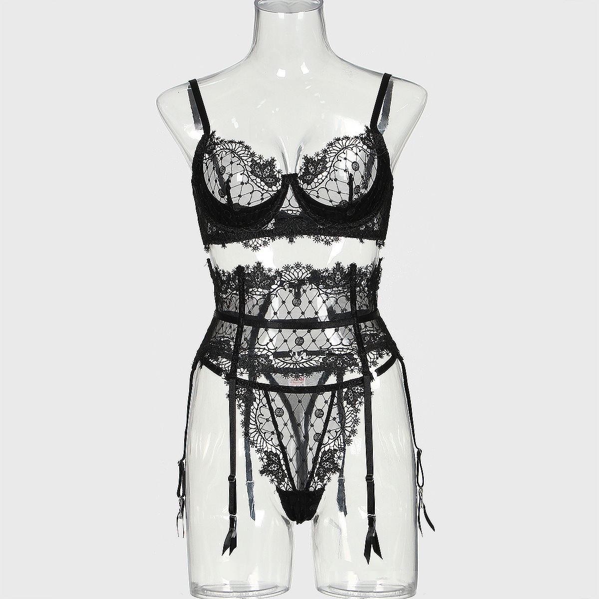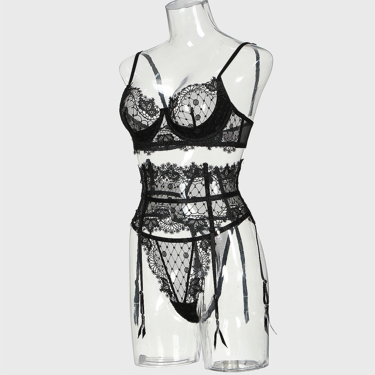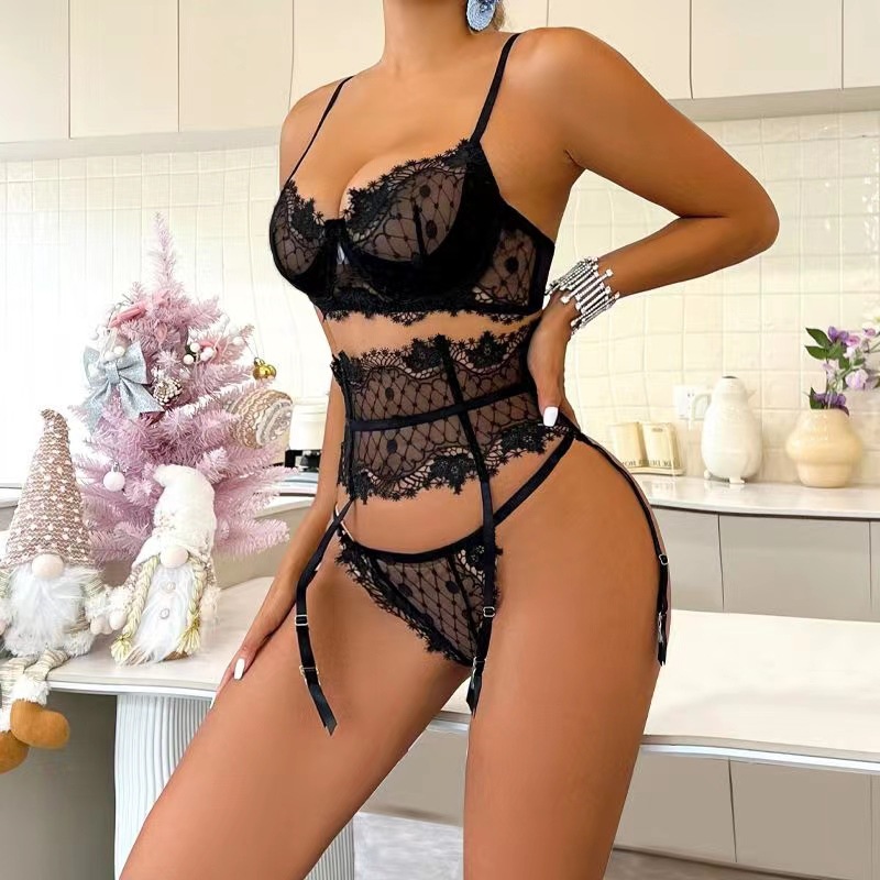 Sexy See through Lace Joint Body Shaping Sexy Lingerie Three Piece Set