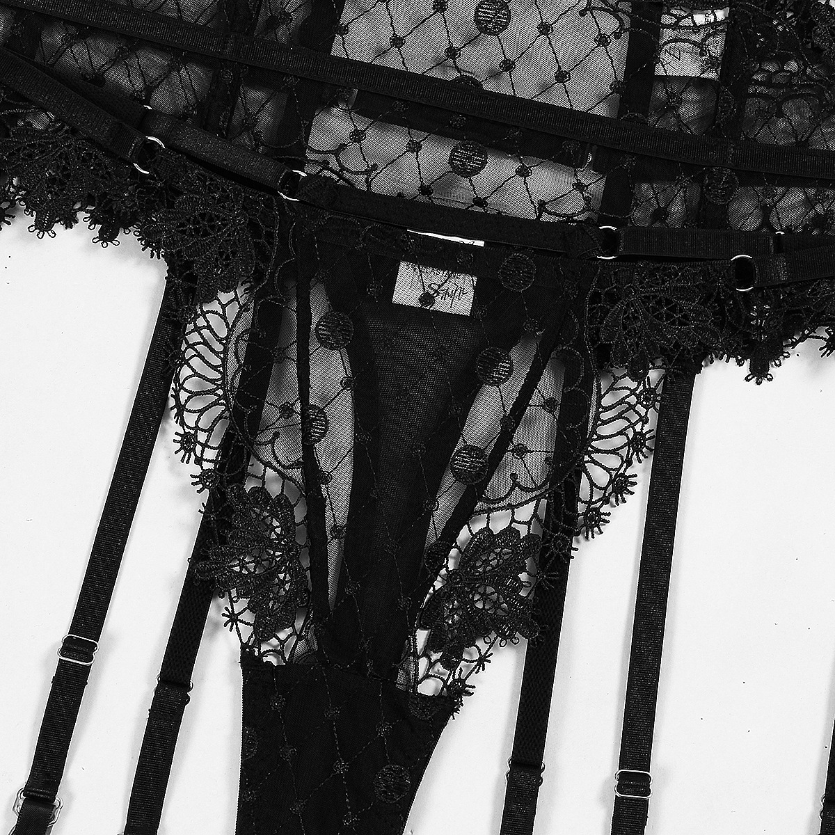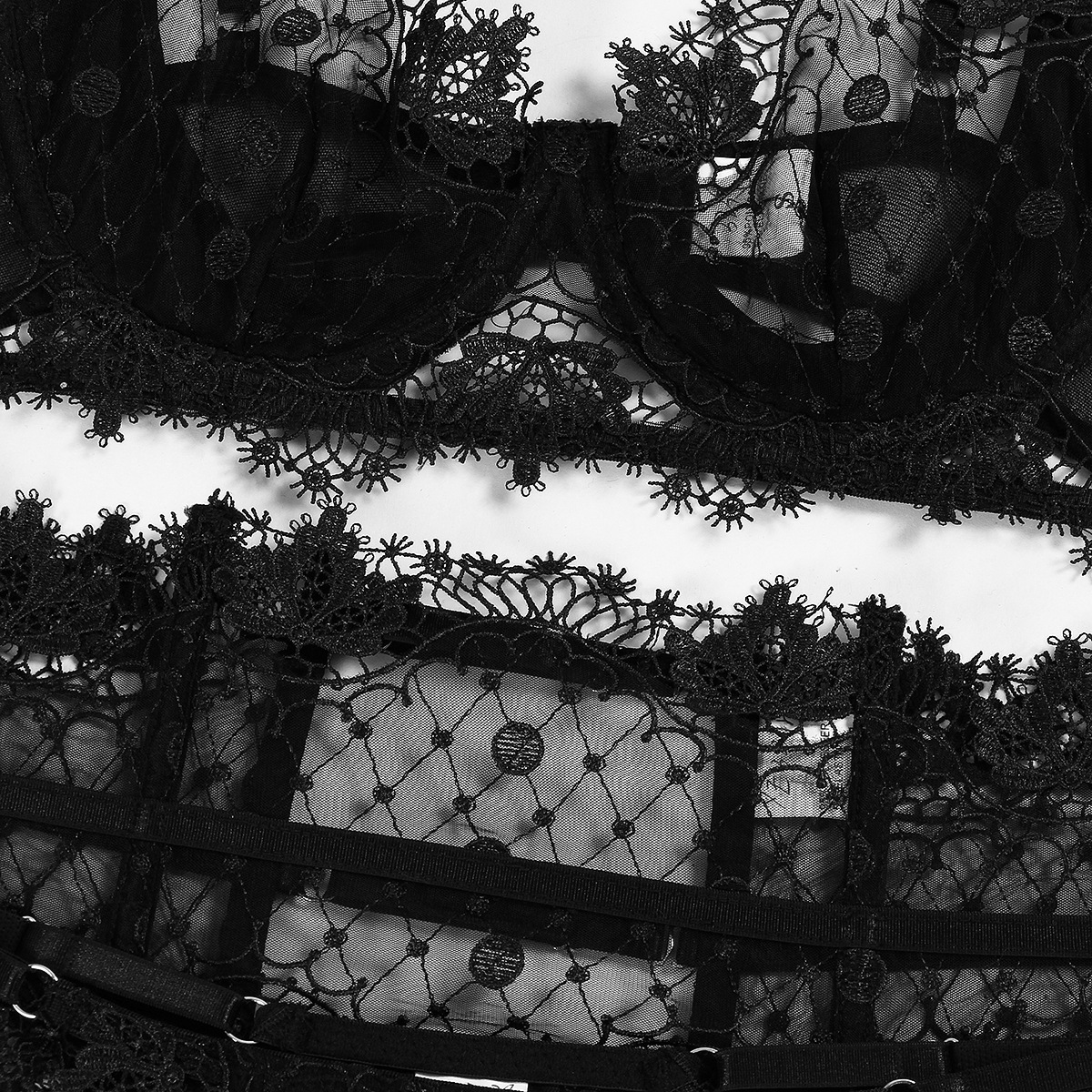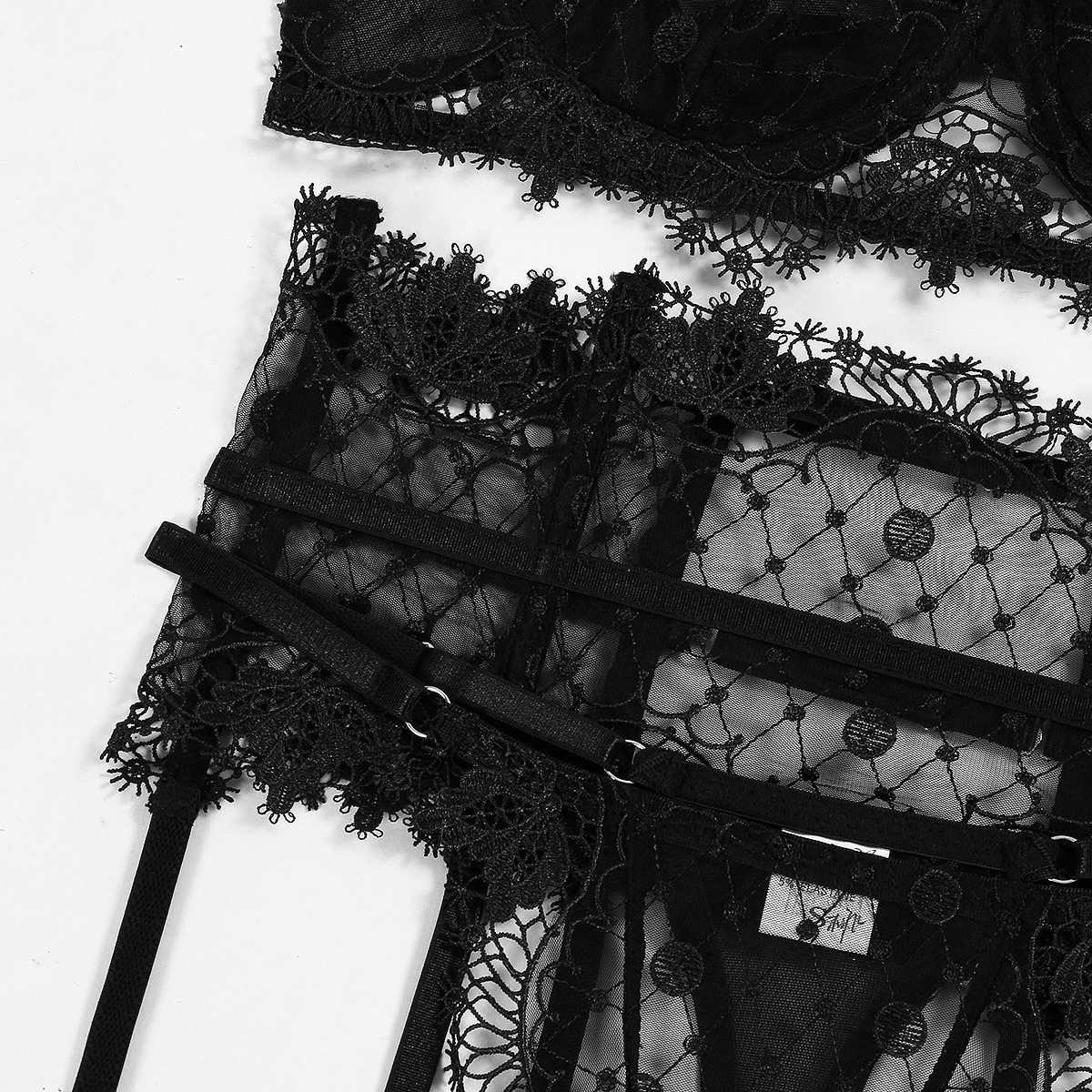 Sexy See through Lace Joint Body Shaping Sexy Lingerie Three Piece Set