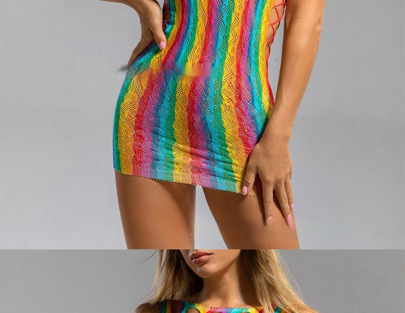 Sexy Stockings Sexy Rainbow Color Short Skirt Large Mesh Hollow Out