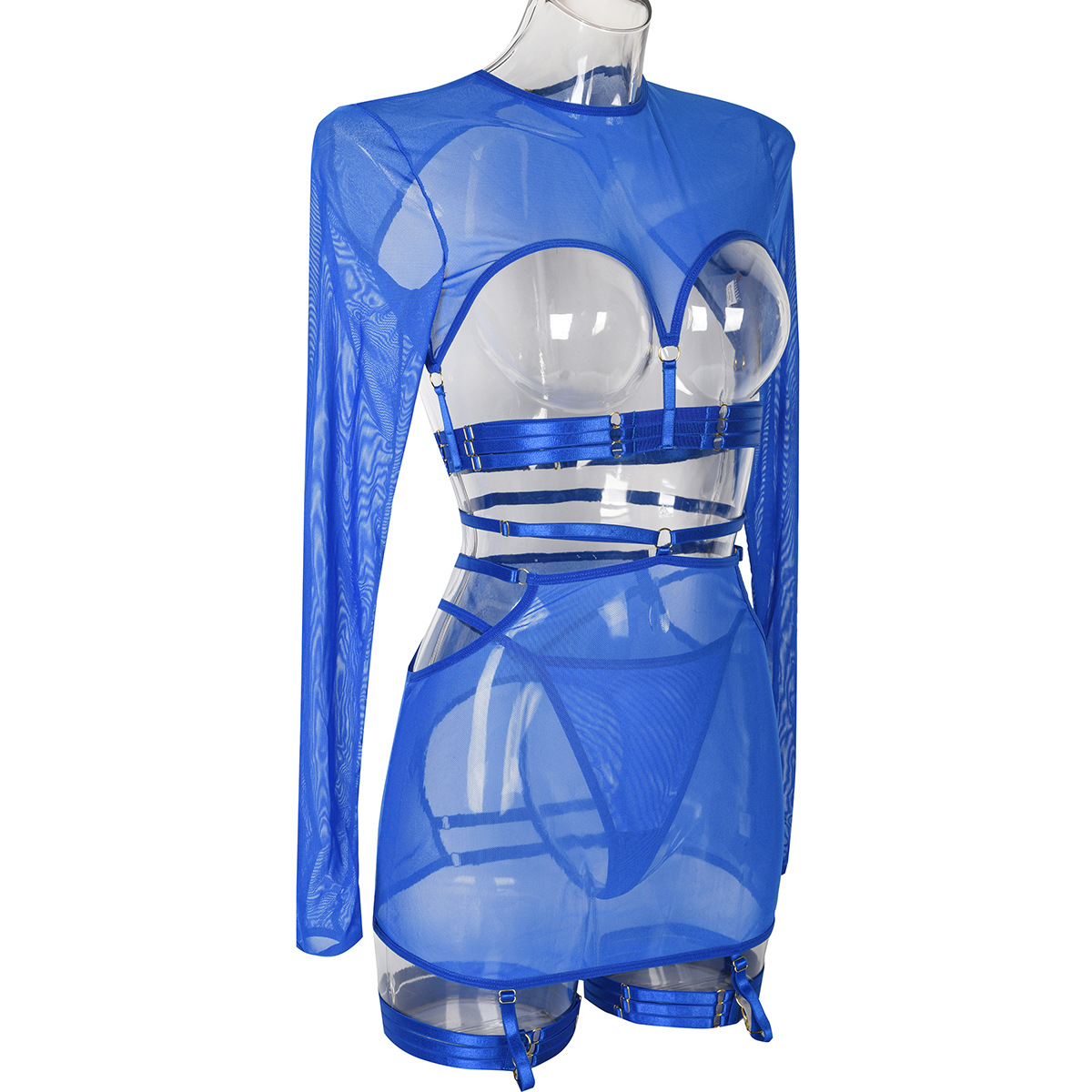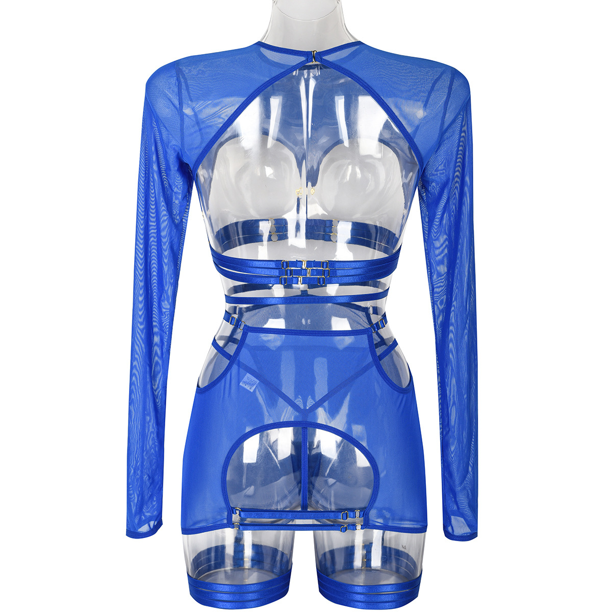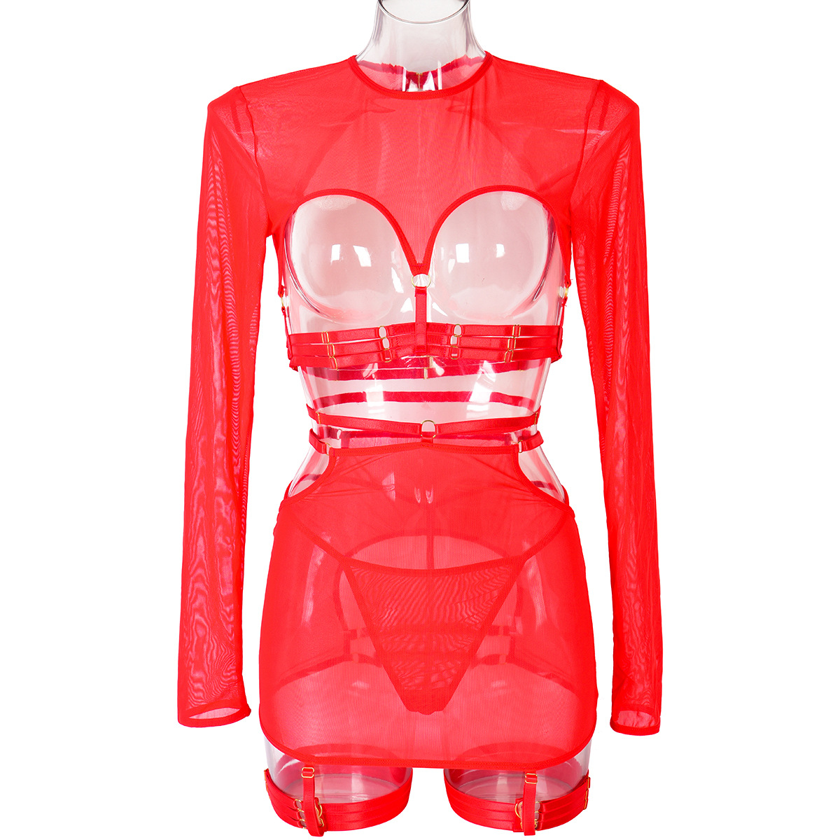 Sexy Underwear 5 Piece Set Sexy Cutout Strap Cool Long Sleeve Top with Leg Ring