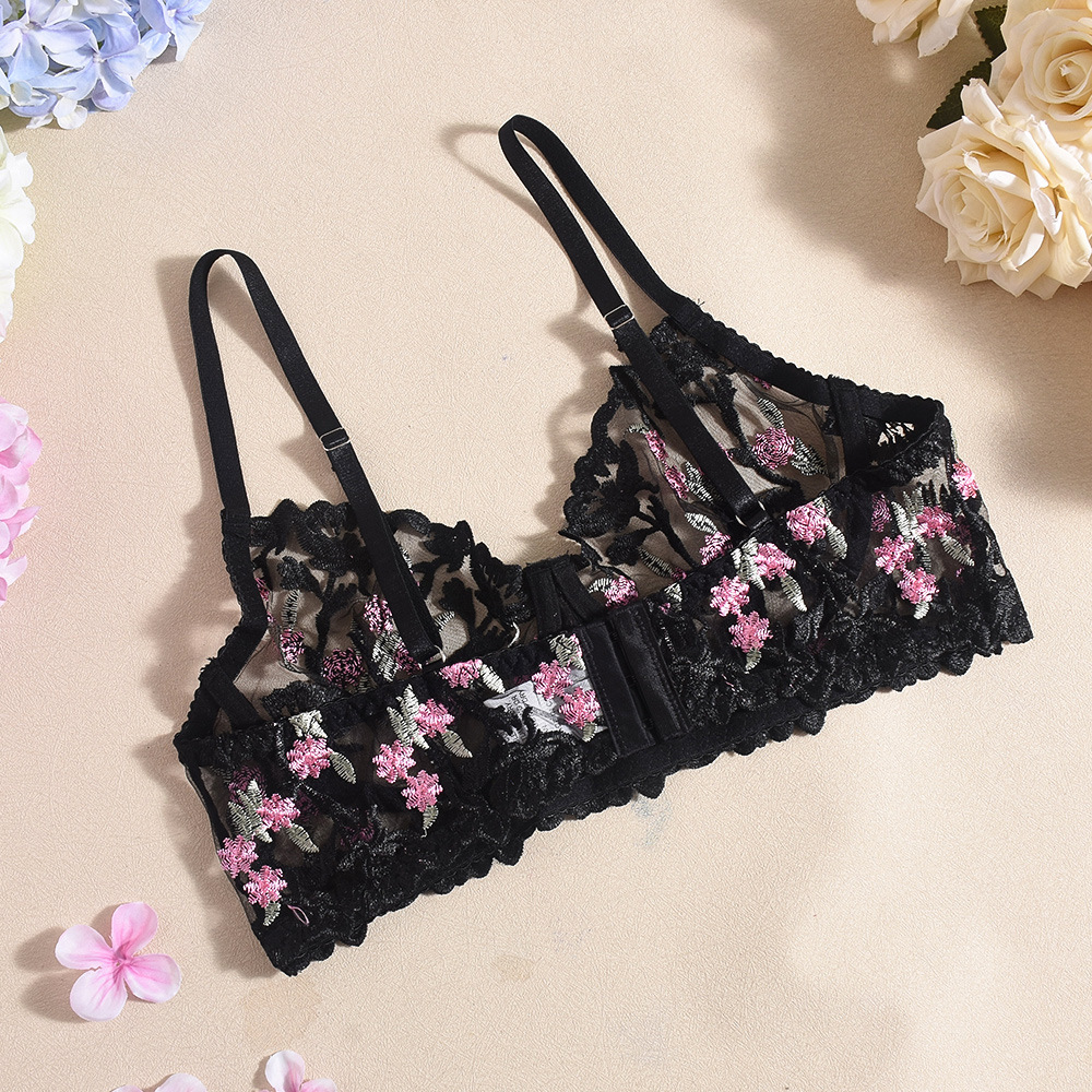 Sexy Underwear Embroidery Three Point Sexy Two Piece Suit Push Up Suit