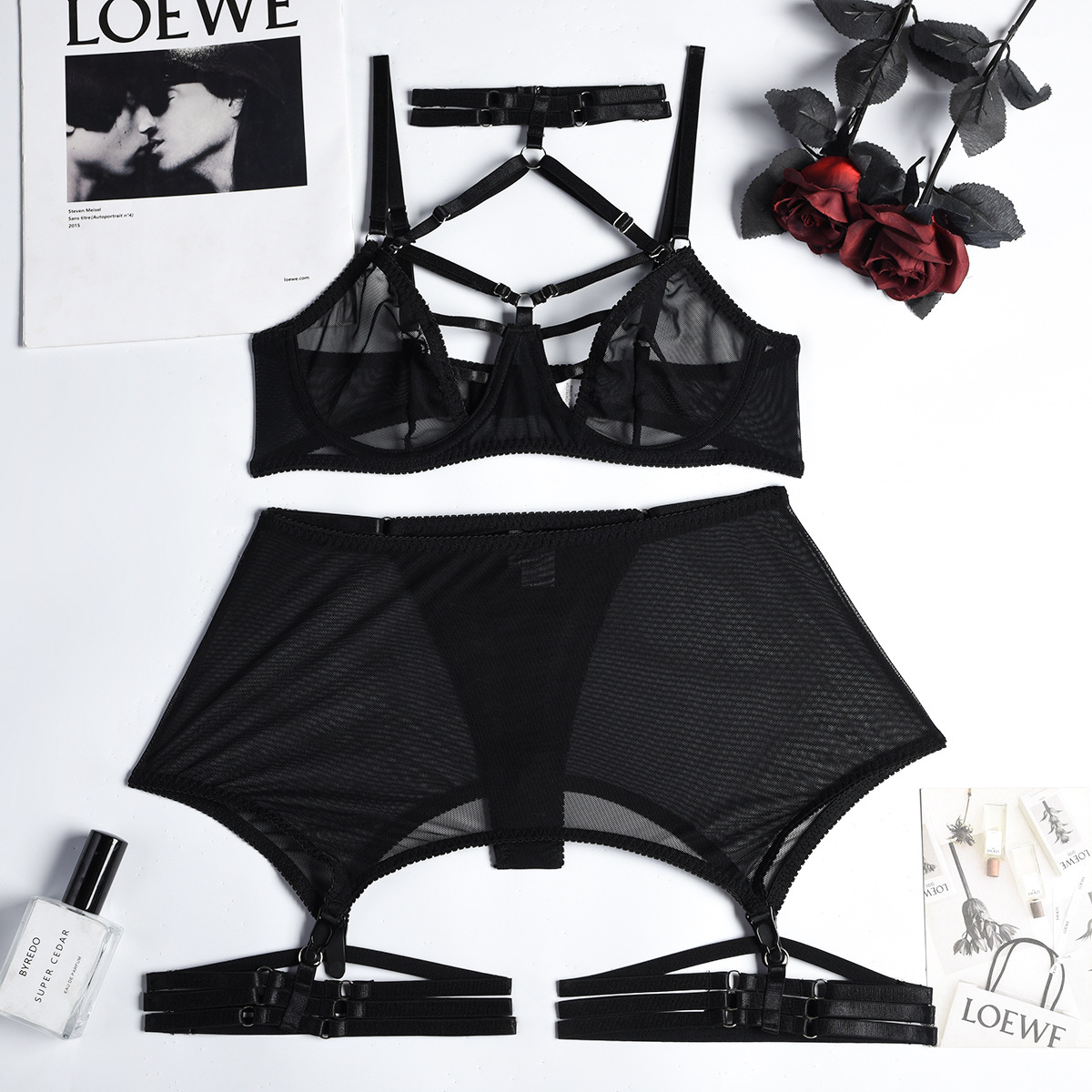 Sexy Underwear Three Piece Bra Steel Ring Binding Nightclub Suit