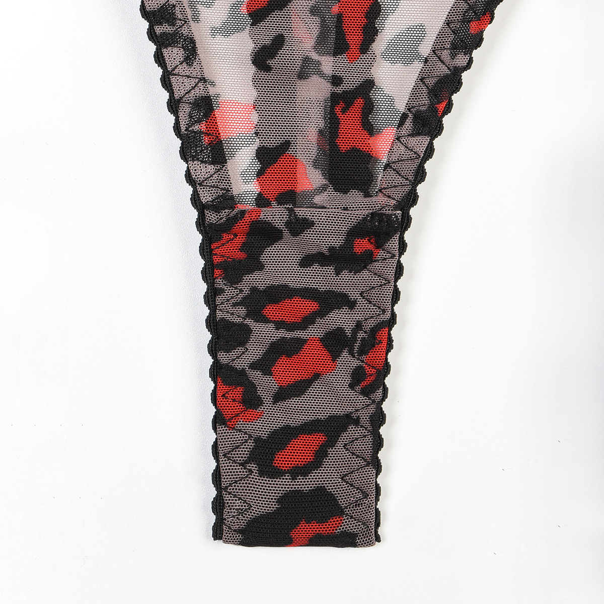 Sexy Underwear Women Leopard Print See Through Complex Heavy Industry Three Piece Muqian