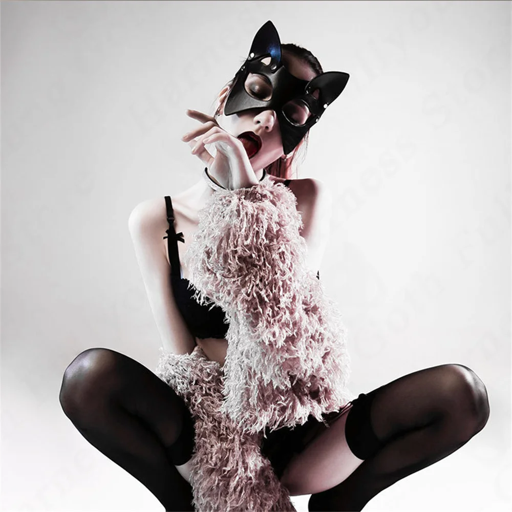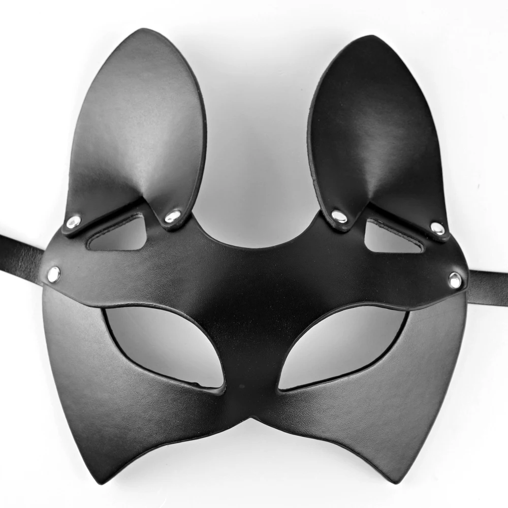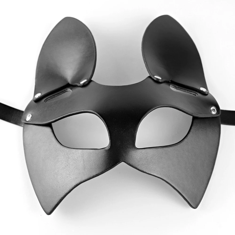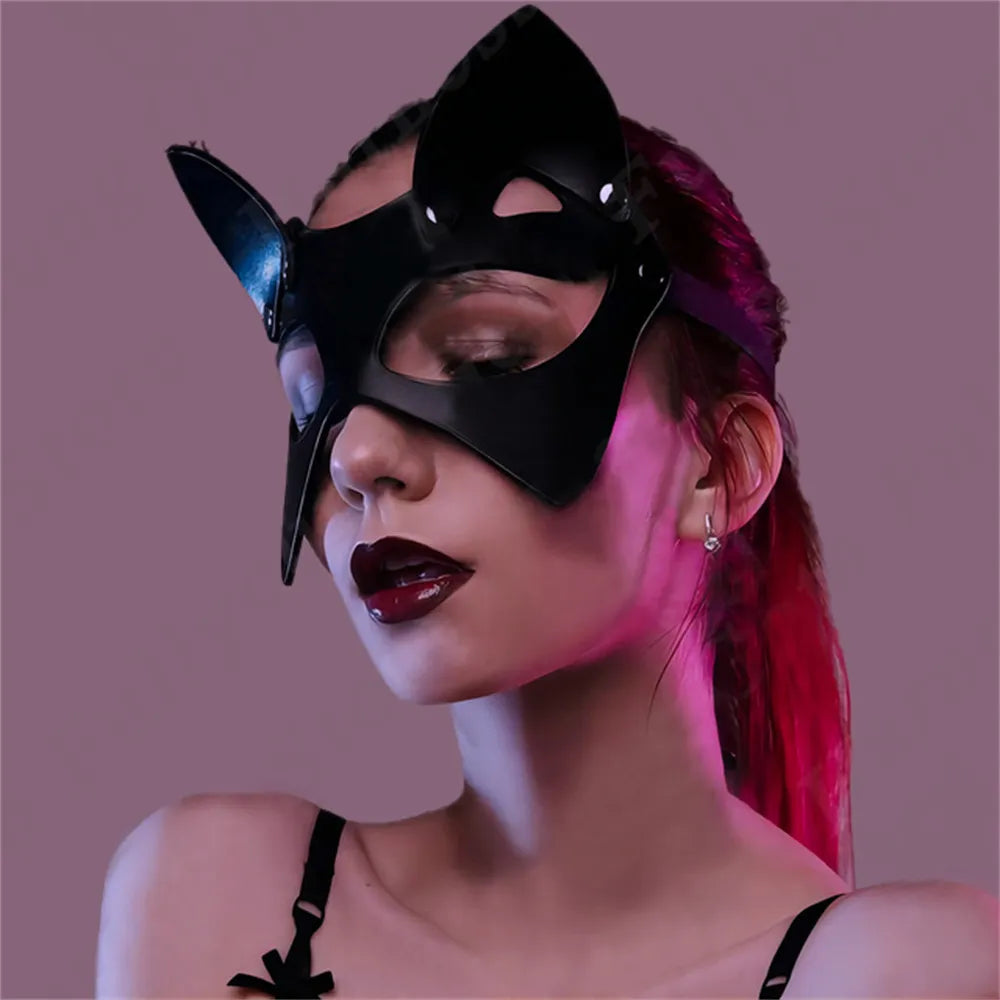 Women Cosplay Mask Leather Harness Mask Cosplay Fun Cat Mask Black Halloween Games Mask