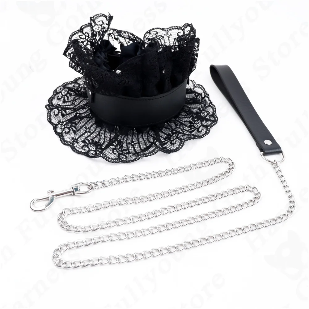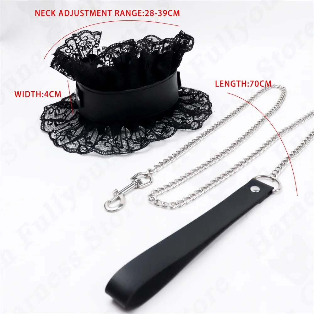 Women Leather Harness Traction Rope Metal Link Chain Bell Pendant Punk Collar Choker Necklace Accessories