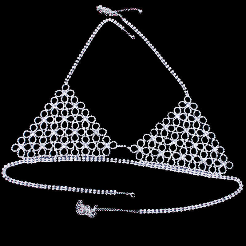 Shiny Sexy Bikini Set with Rhinestone Hollow Flower Body Chain