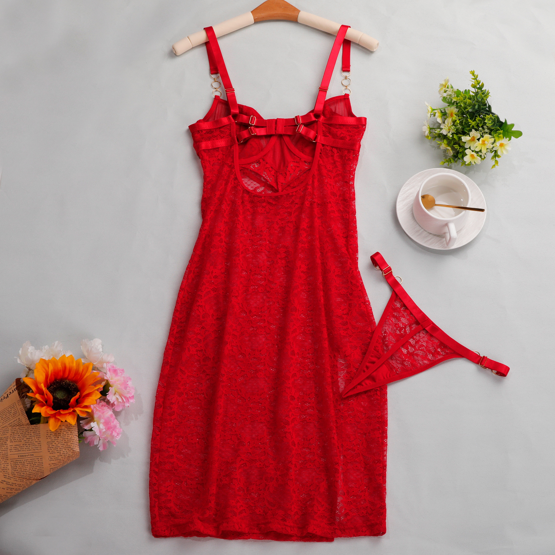 Sling Lace Hollow Out Cutout Out Sexy Slim Fit Sexy Dress Sexy Underwear Two Piece