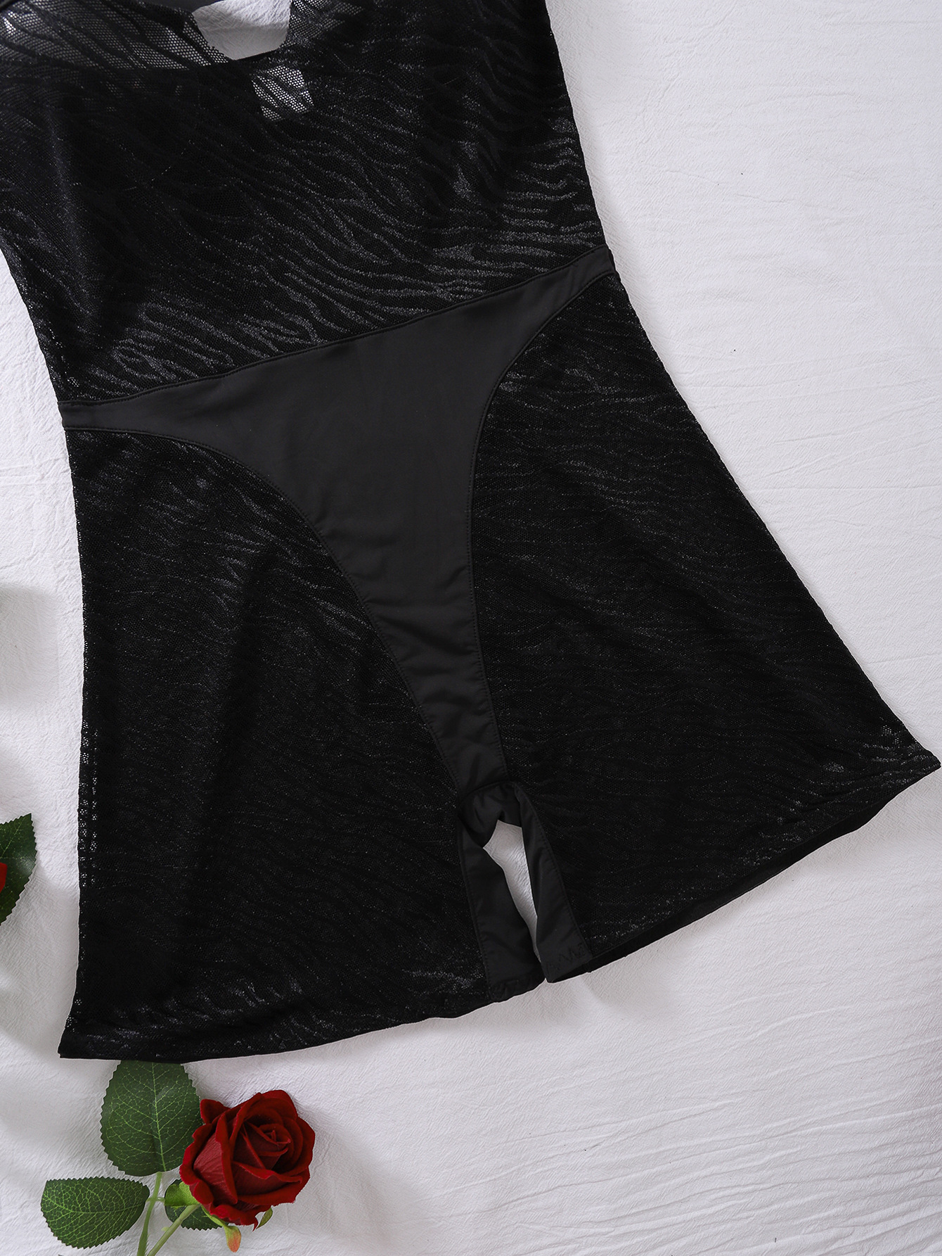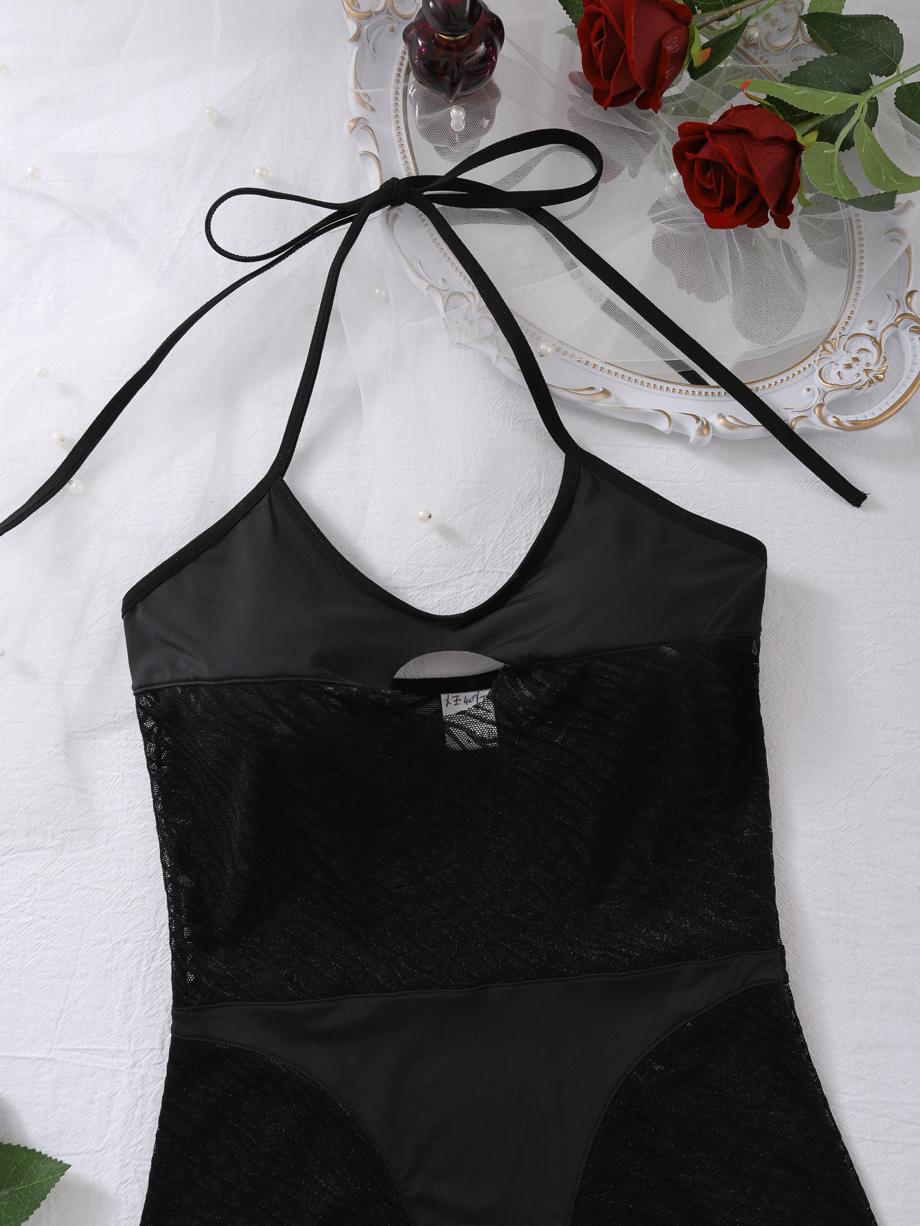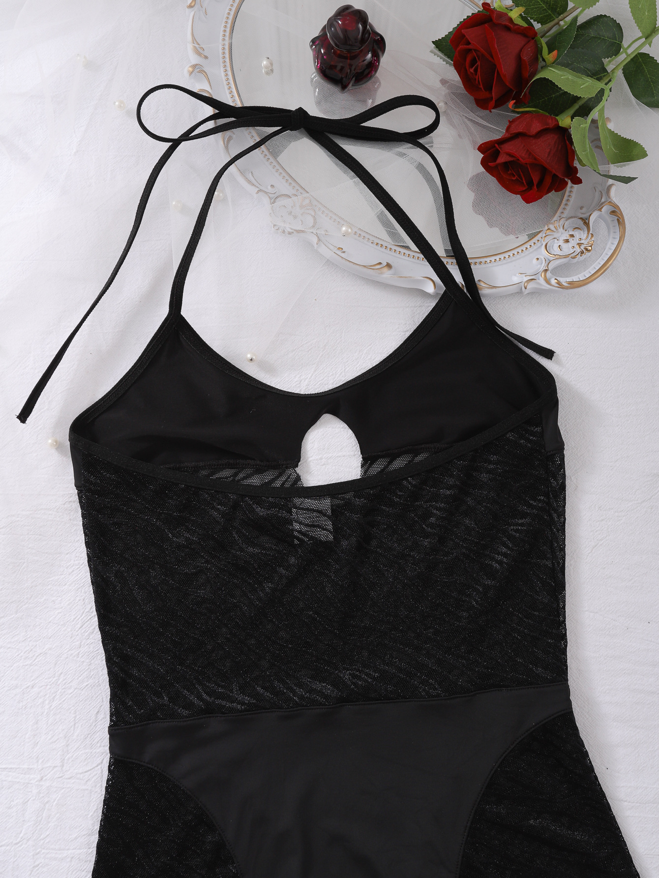 Summer Sexy Mesh Hollow Out Cutout Lace up Halterneck Underwear Casual Skinny Sheath Jumpsuit Women