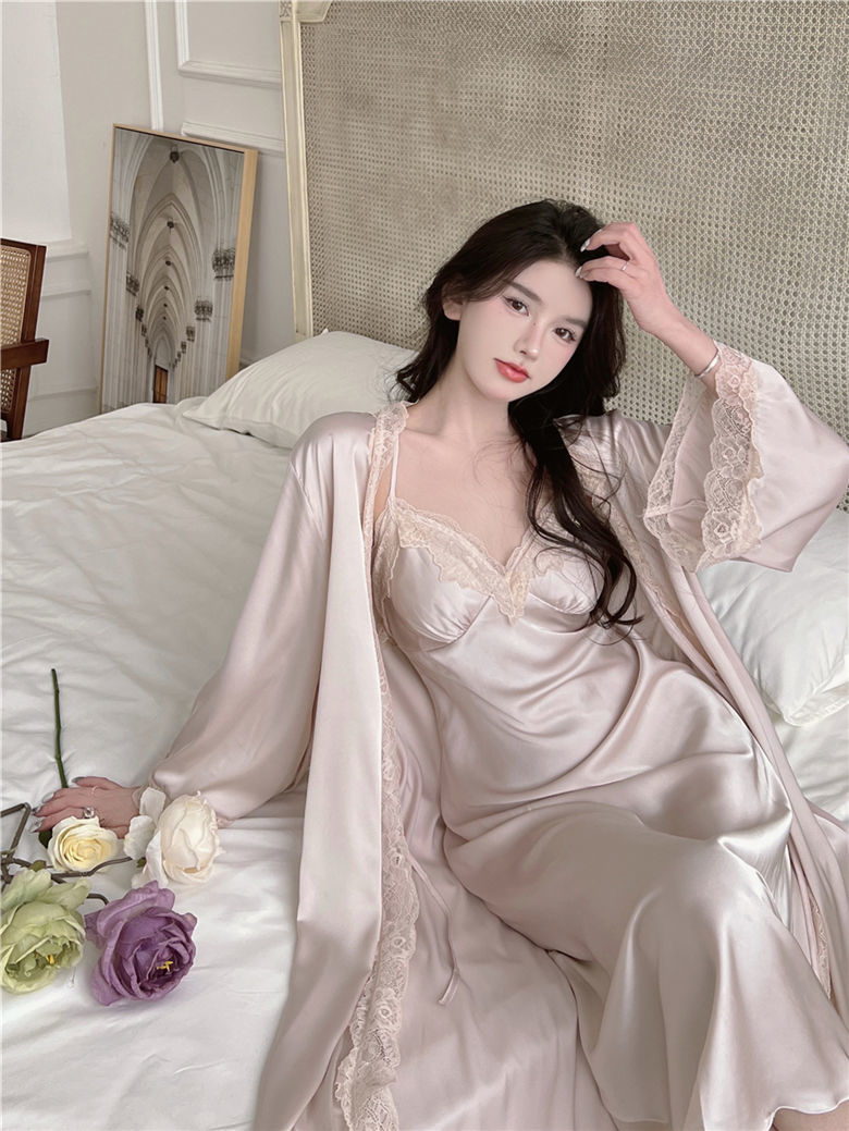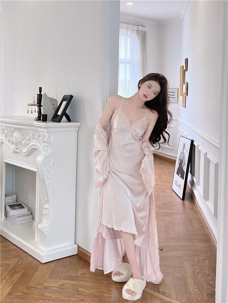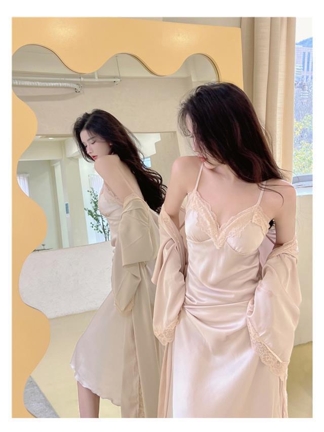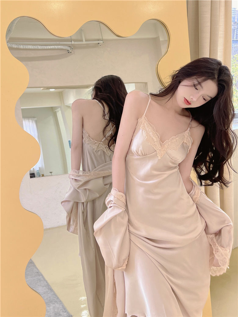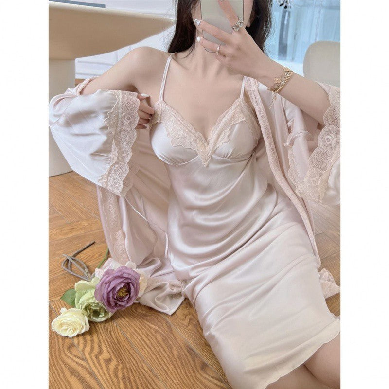 Suspender Pajamas Women's Ice Silk Padded Nightdress Two-piece Set
