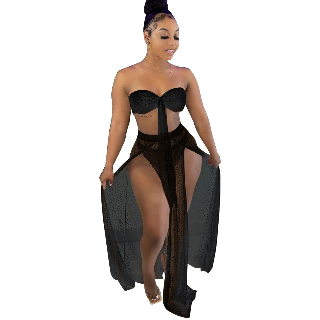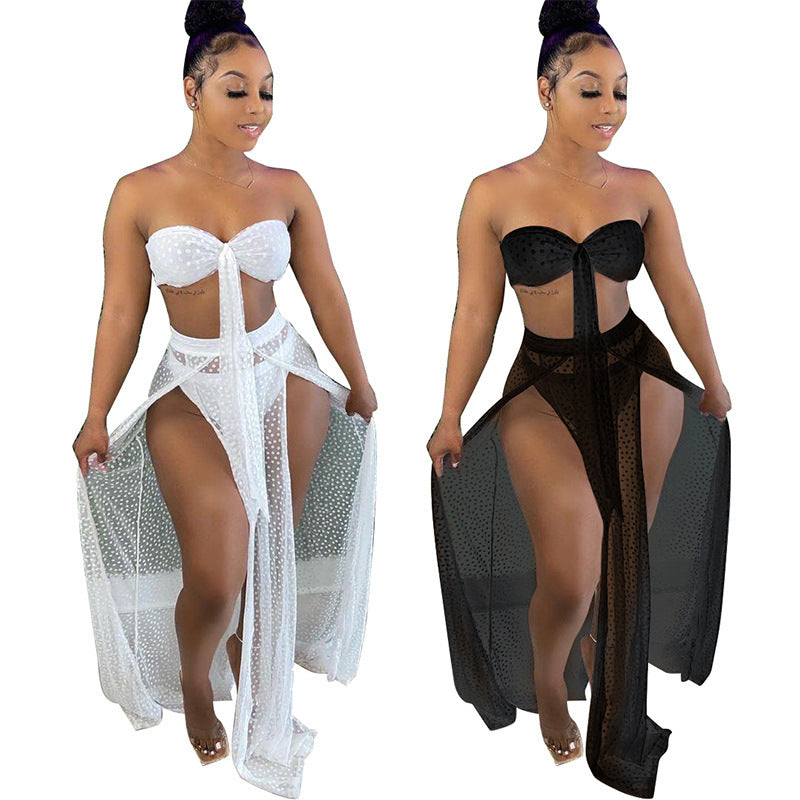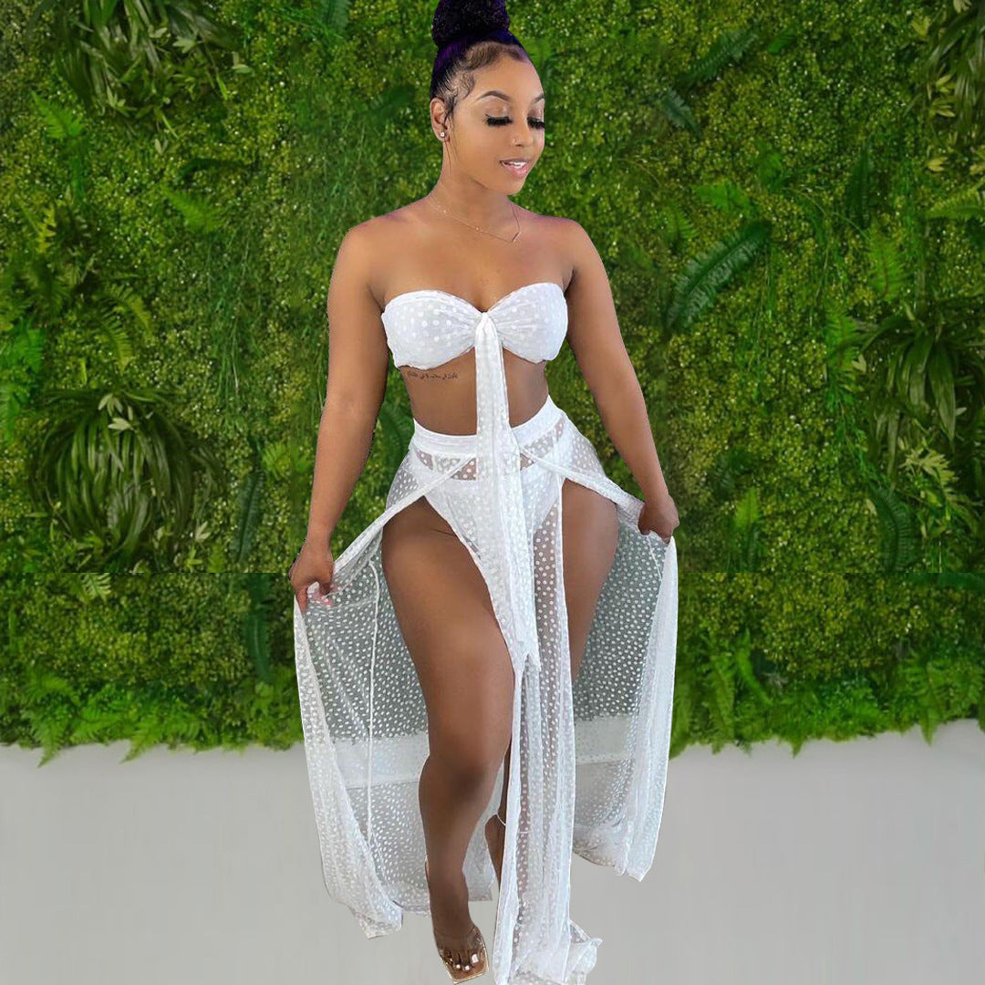 Swimsuit Bikini Set Women With Skirt 3 Piece Solid Color Sexy Swimsuit