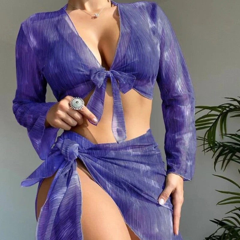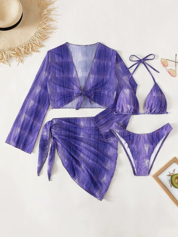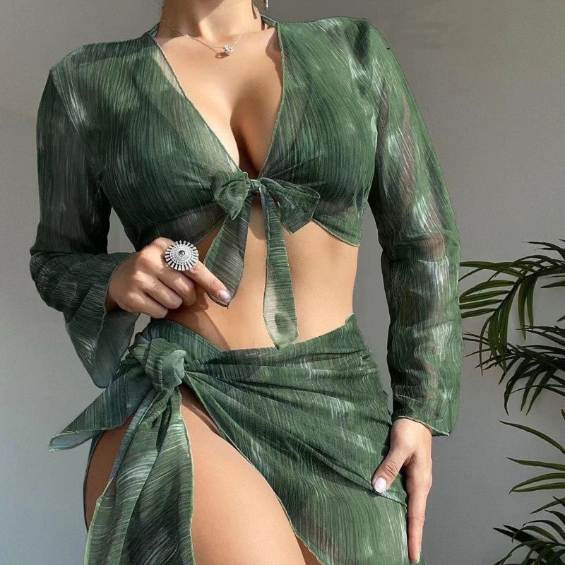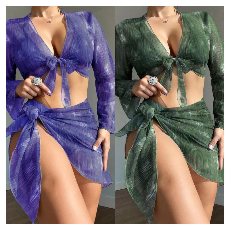 Swimsuit New 4 PCs Set Split Long Sleeve Bikini For Women