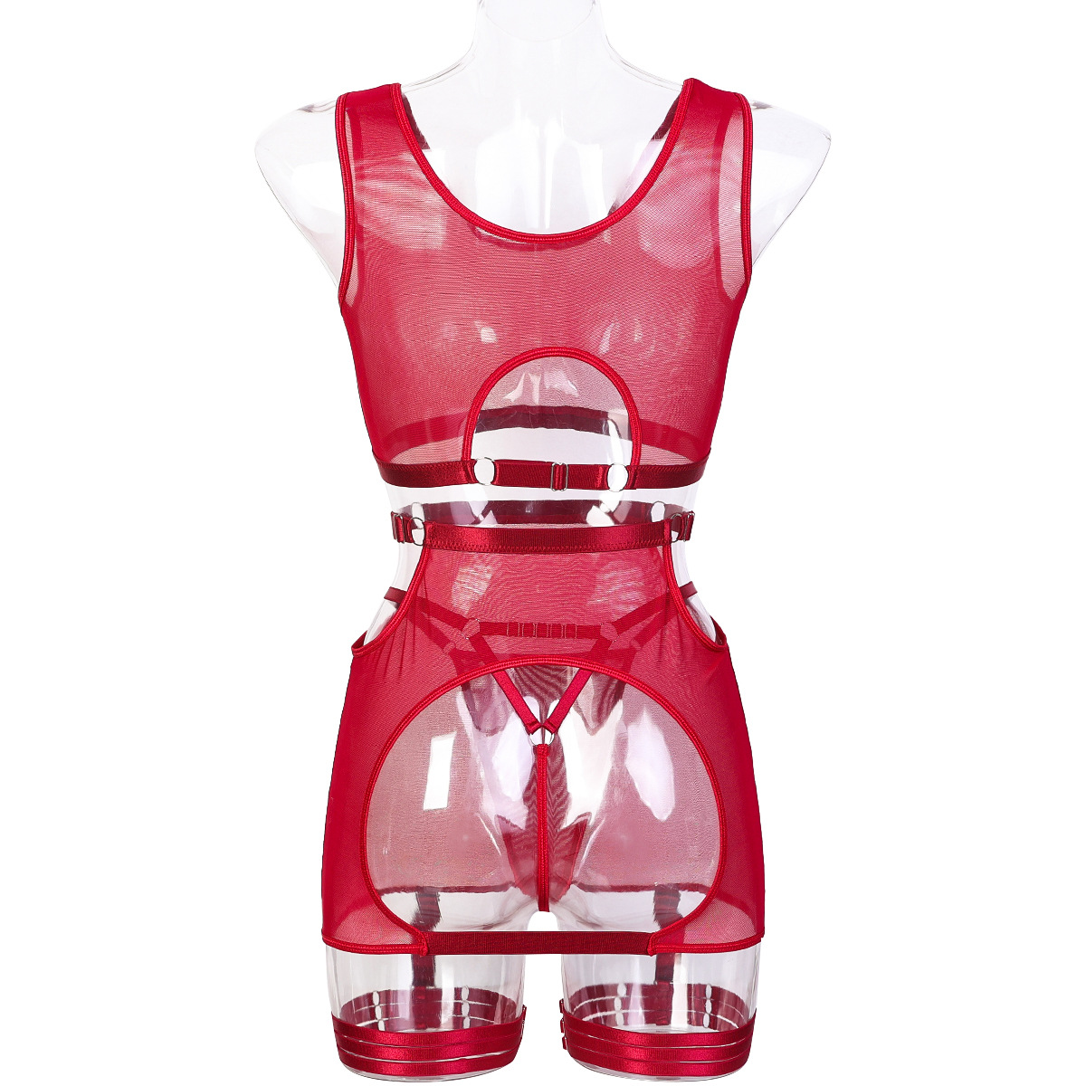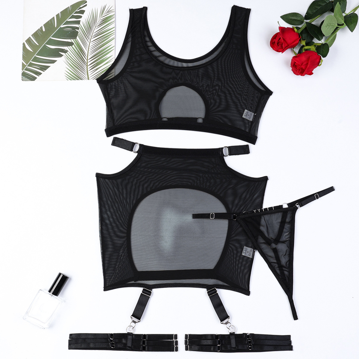 Temptation See through Sexy Fishnet Clothes Women Clothing Sexy Lingerie Four Piece Set