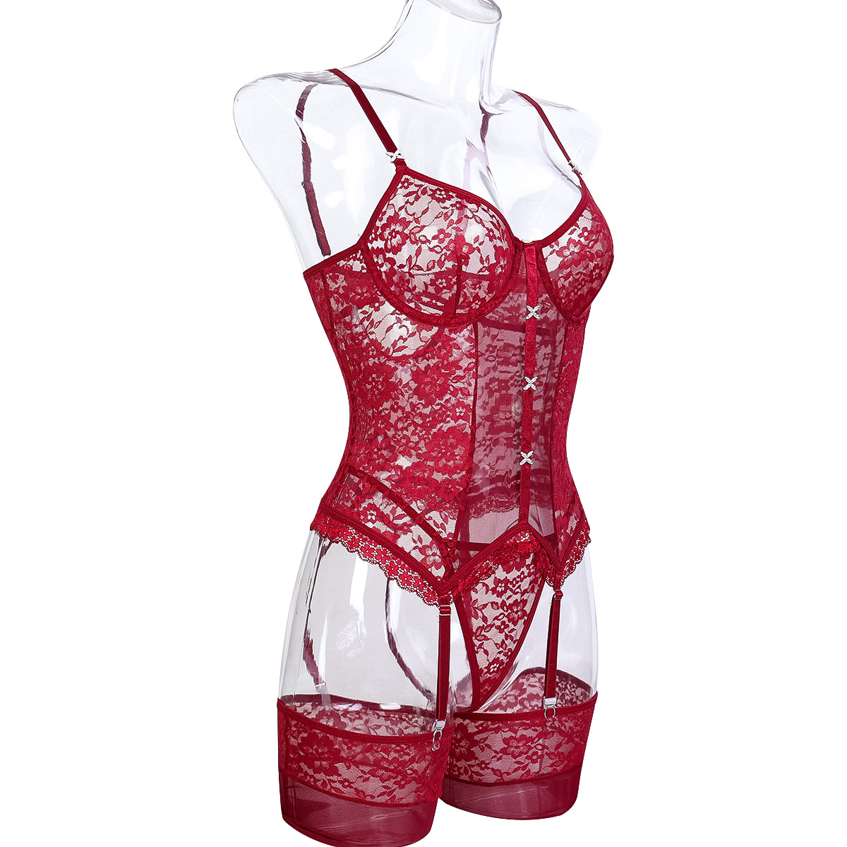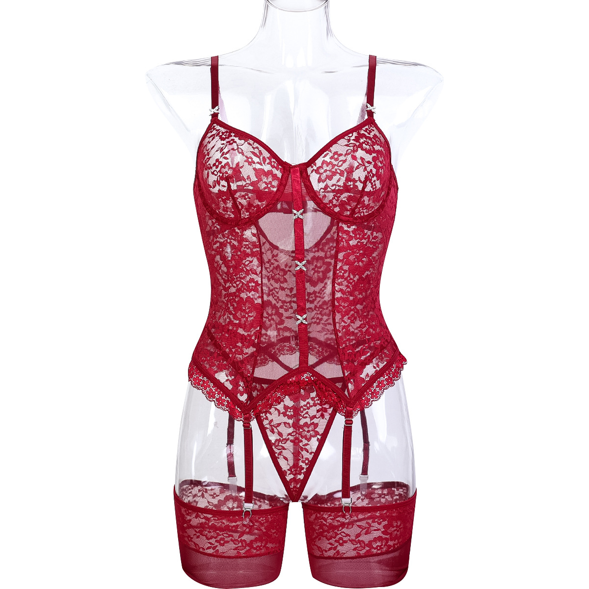 Temptation Thigh High Socks Three Piece Set Lace See through Crystal Buckle Luxury High End Sexy Underwear