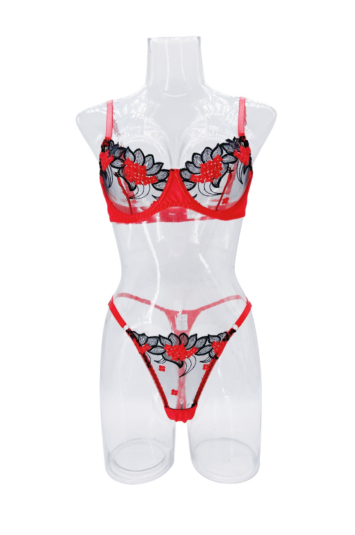 Underwear Three Point Sexy Mesh Embroidery See Through Sexy Lingerie Suit Women T Shaped Panties Temptation