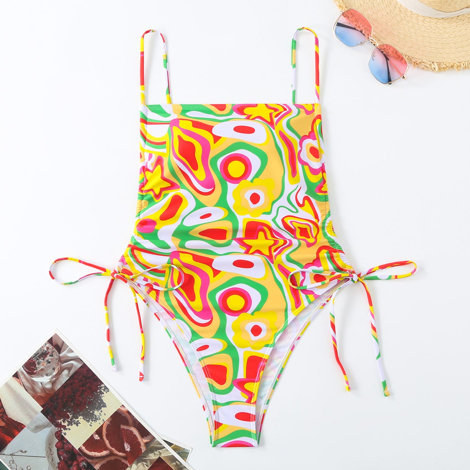 Vacation Style Drawstring Slimming Sexy One Piece Swimsuit
