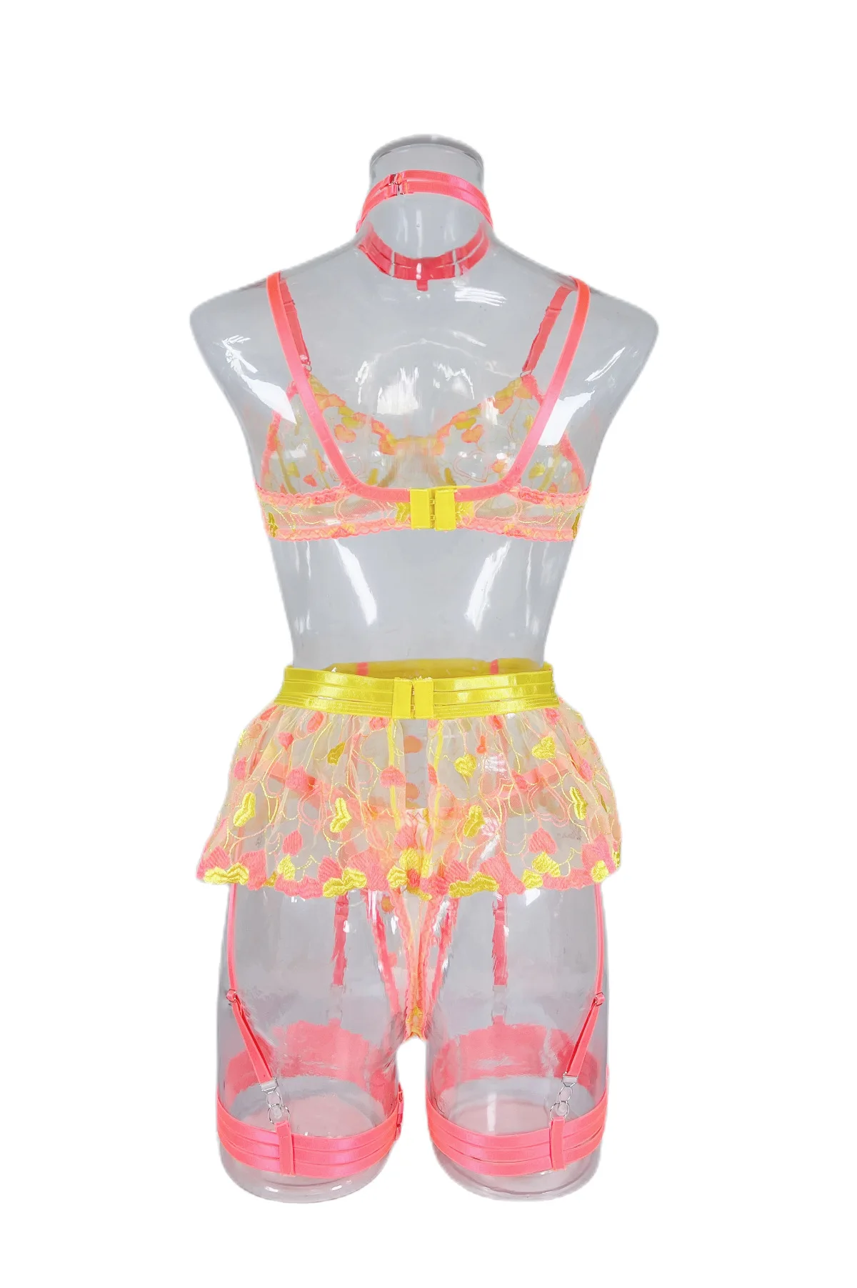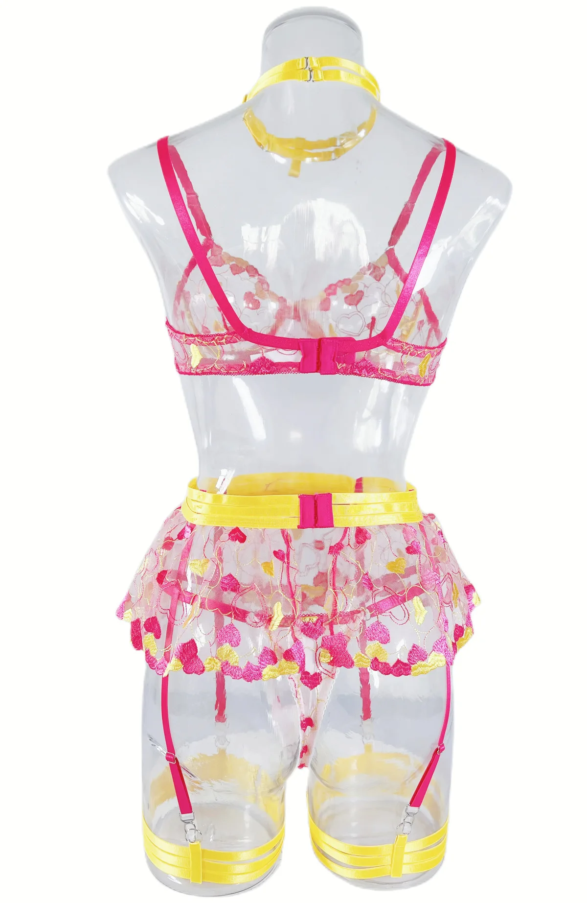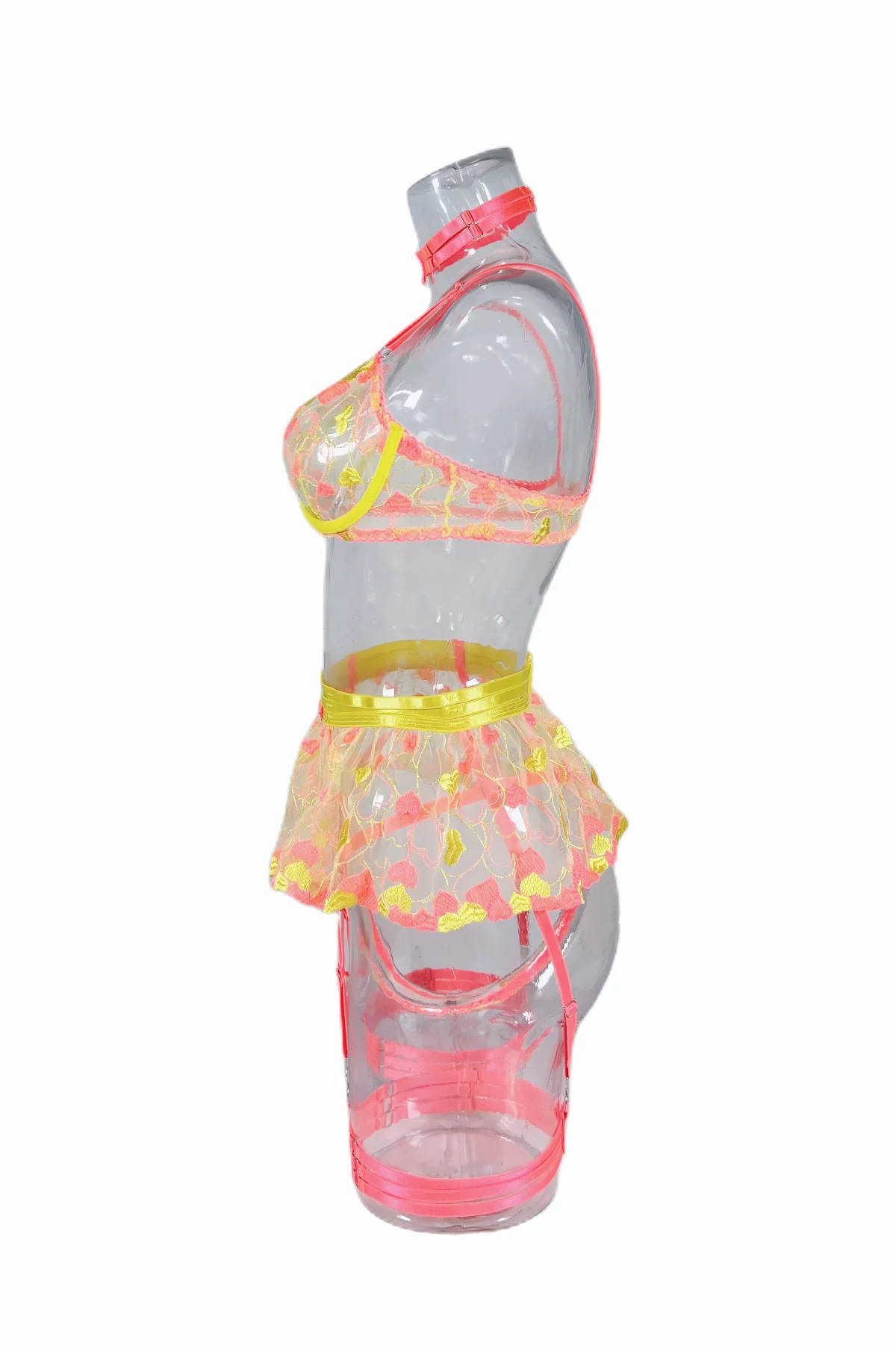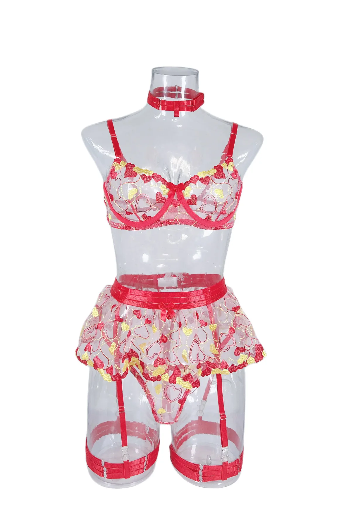 Valentine Lingerie Fancy Beautiful Underwear Ruffle Garters Heart-Shaped Embroidery Transparent Bra Sensual Exotic Set
