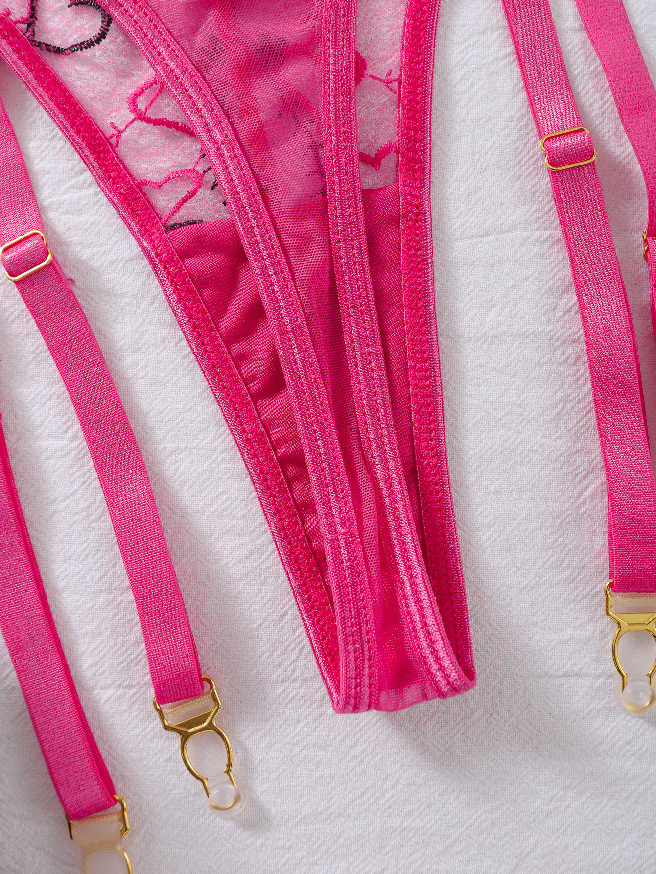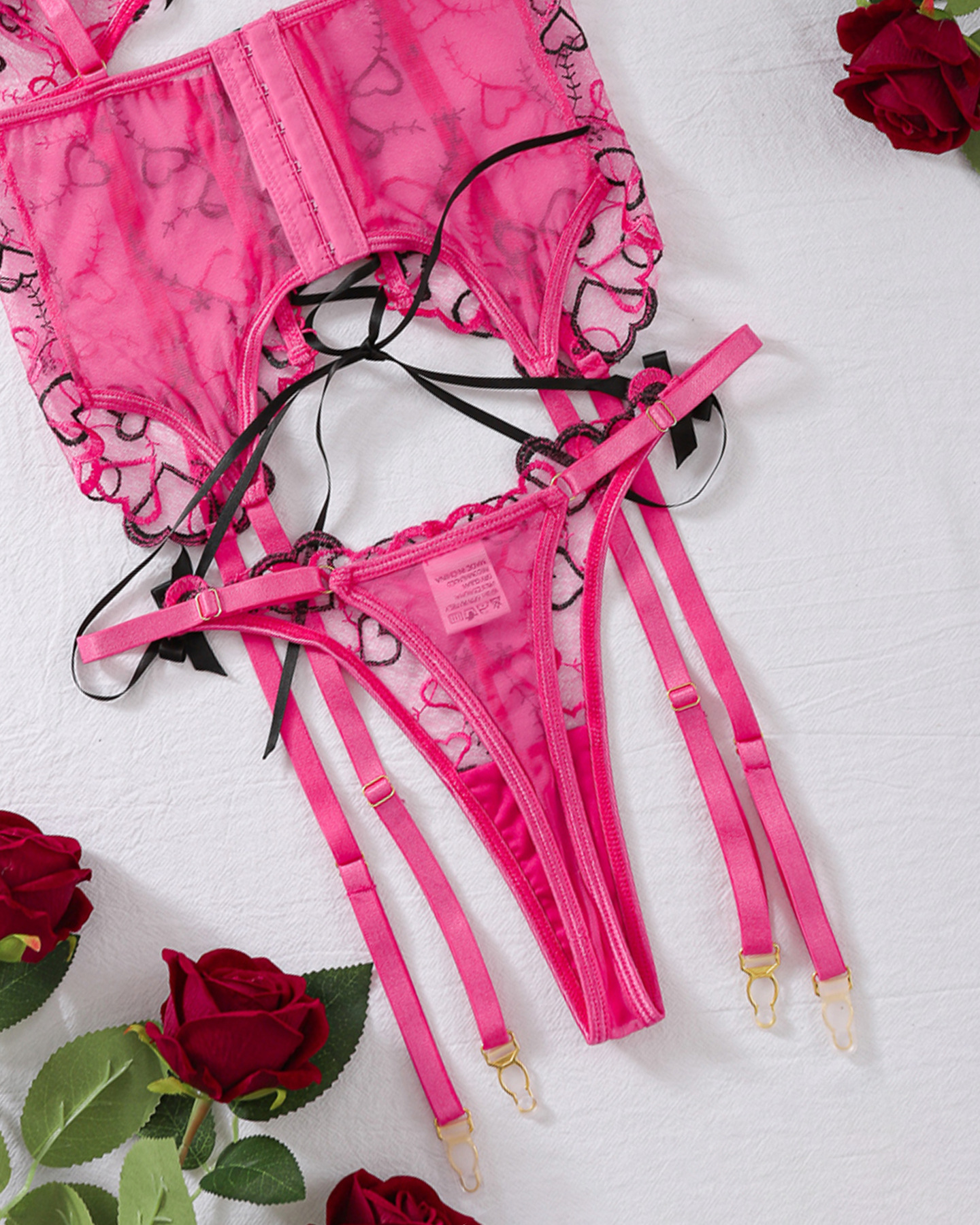 Women Clothing Special Supply Sexy Light Strap Love Embroidered Sexy Lingerie Three Piece Set