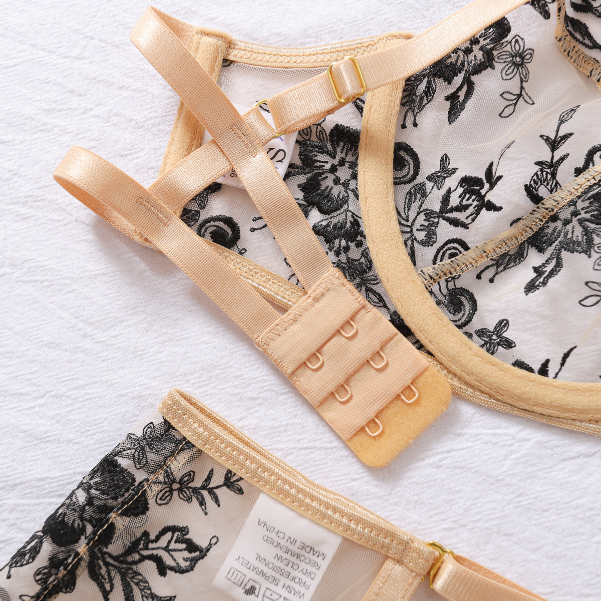 Women Embroidery Heavy Craft Ultra Thin Mesh See through Sexy Bra Set