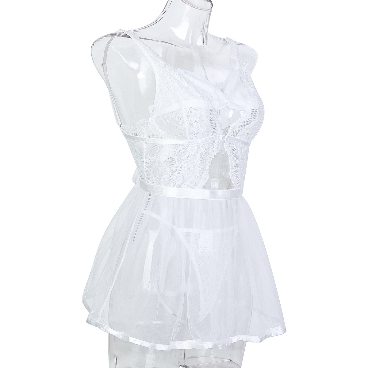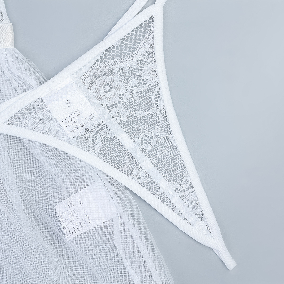 Women Sexy Lingerie White Sexy Straps Tulle Transparent Lingerie Three Piece Set