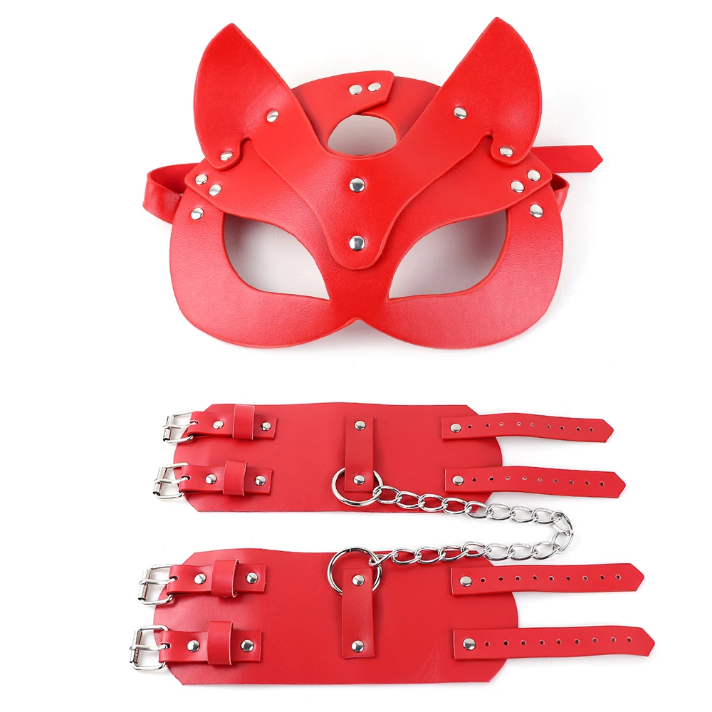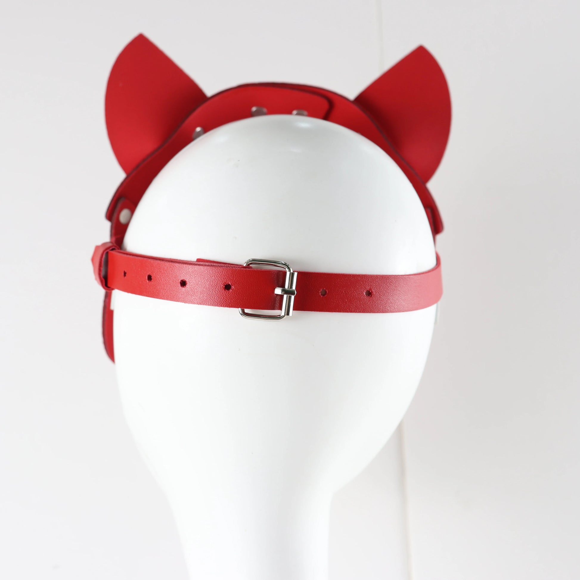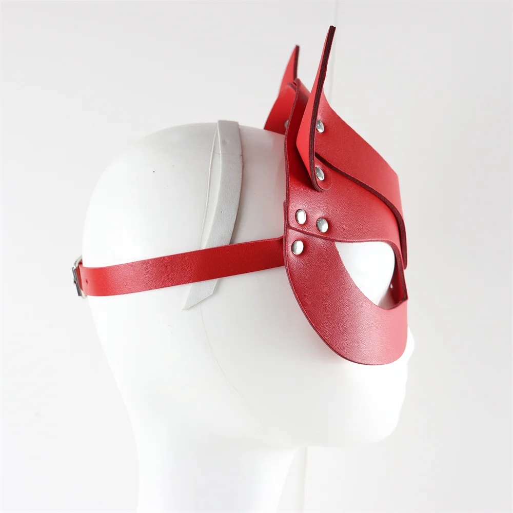 Women Red Mask Half Face Cosplay Leather Party Mask Chain Harness Necklace Masquerade Ball Punk Fancy Masks