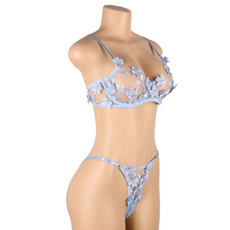 Women Sexy Temptation See through Embroidery Mesh Steel Bracket Underwear Panties Set