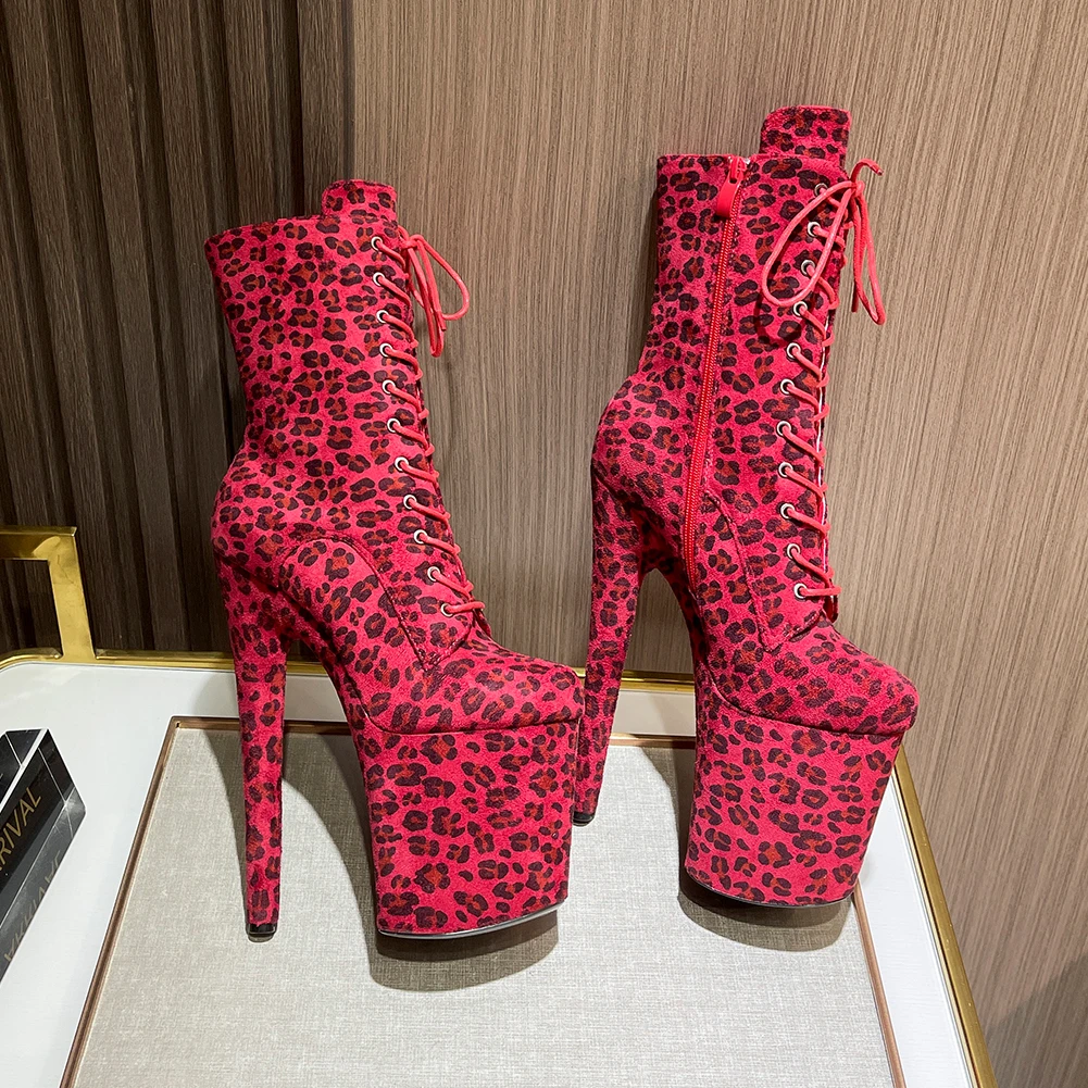 Women's Short Boot Leopard Print Flock 20cm/8Inch High Heels Sexy Ankle Boots Pole Dance Shoes Lace-up Zip Platform Stiletto