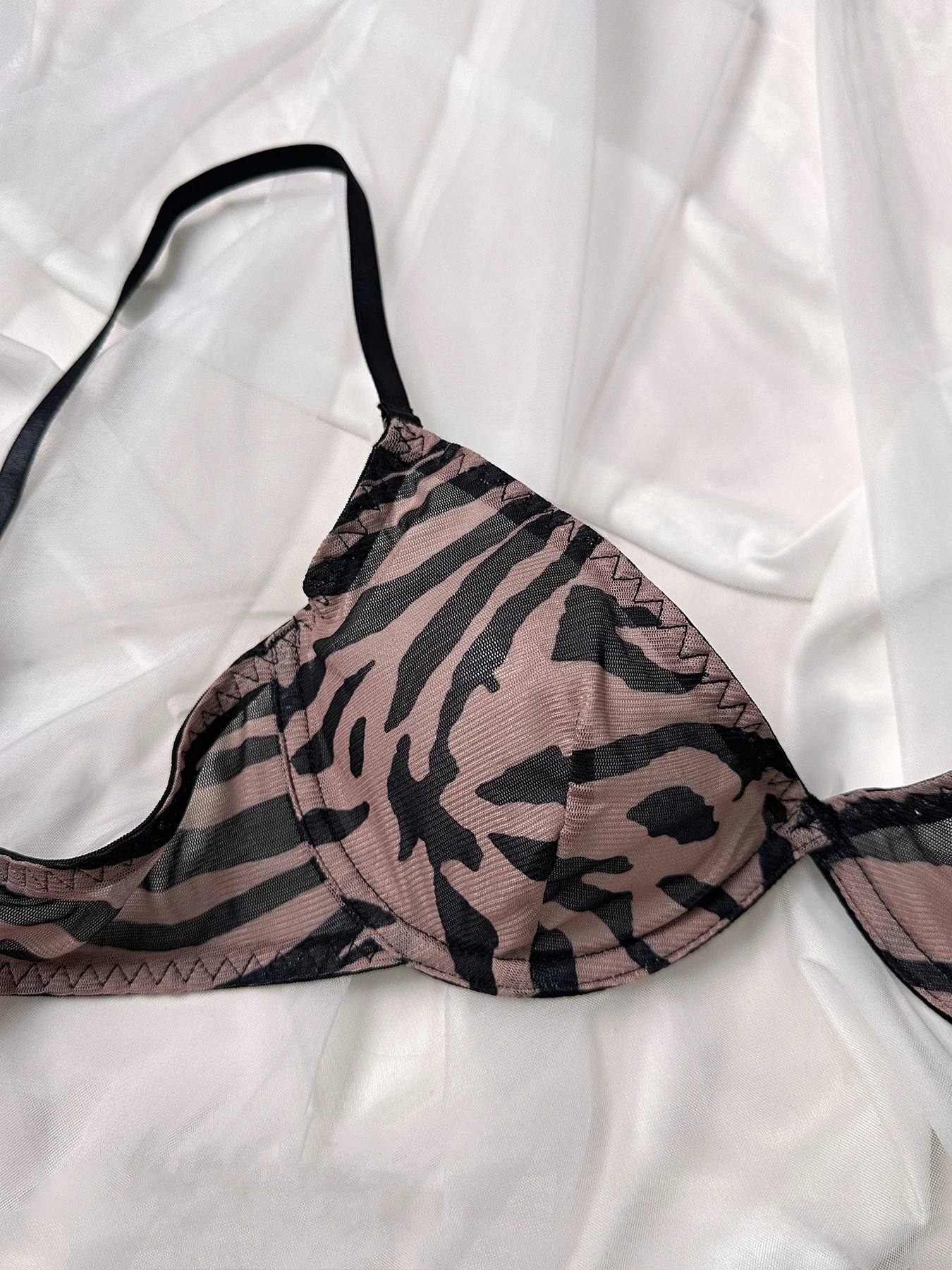 Zebra Lingerie Onlyfans Woman Pink Beautiful Push Up Bilizna Sexy ESee Through Seamless Underwear Set